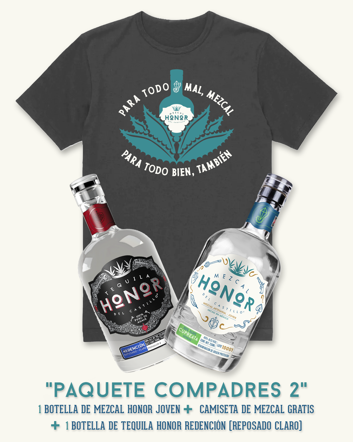 INCLUYE: Honor Mezcal (Joven) / Tequila Honor Redención (Reposado Claro) y Camiseta de Mezcal