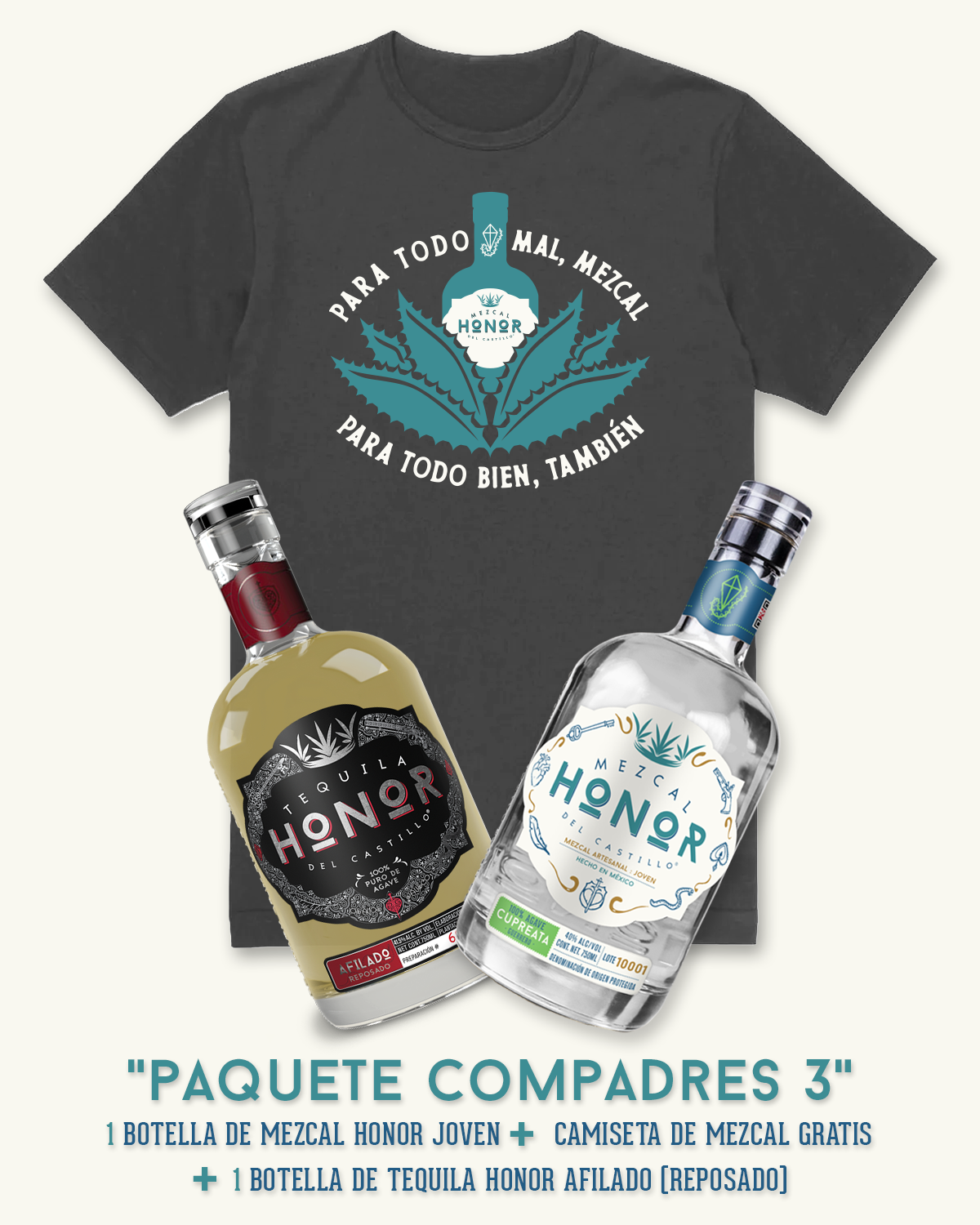 INCLUYE: Honor Mezcal (Joven) / Tequila Honor Afilado (Reposado) y Camiseta de Mezcal