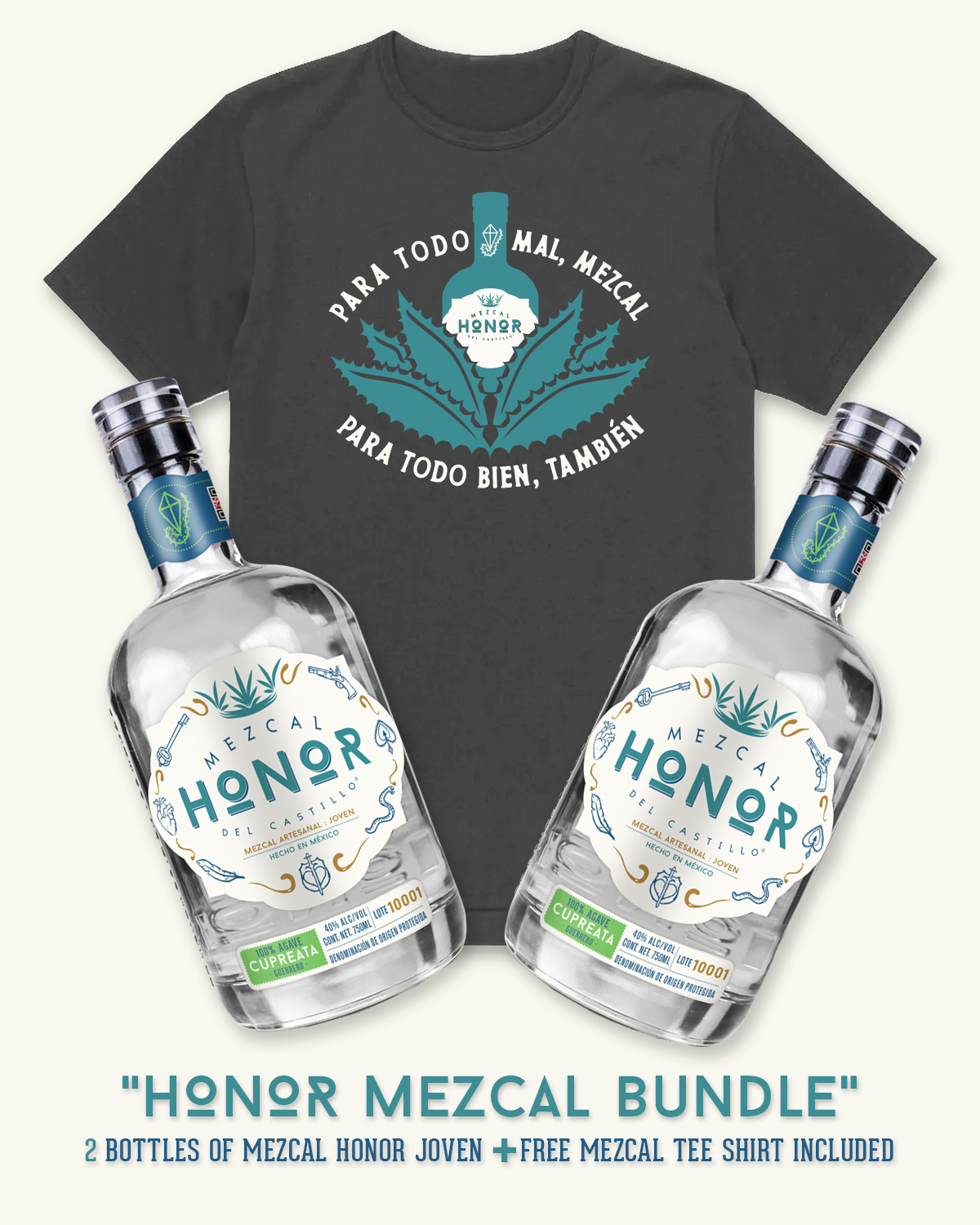 FEATURING: 2 bottles of Honor Mezcal (Joven) and 1 Mezcal Honor Tee Shirt