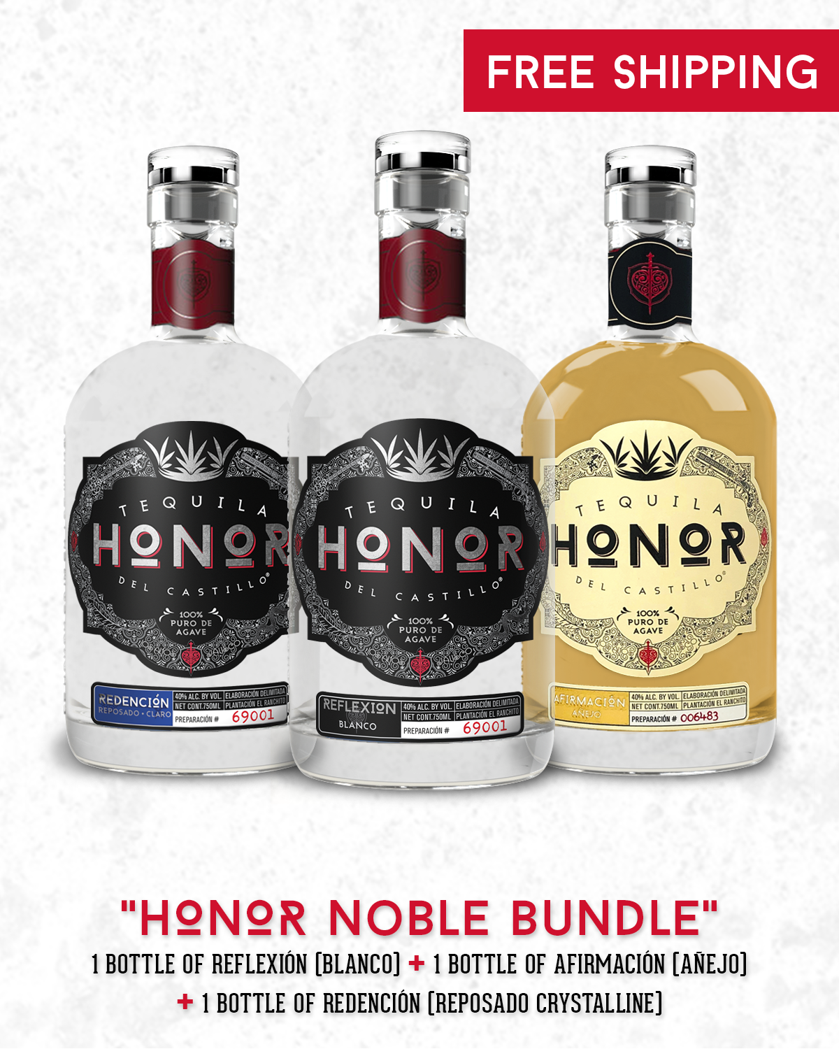 1 bottle of Reflexión (Blanco), 1 bottle of Redención (Reposado Crystalline), 1 bottle of Afirmación (Añejo)